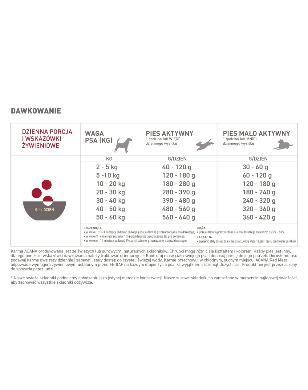 A táblázatban feltüntetett adagok hozzávetőlegesek. A kutyájának etetendő táplálék mennyiségét mindig egyénre szabottan, a kutya állapotának, egészségi állapotának, étvágyának és súlygyarapodásra való hajlamának figyelembevételével állítsa be.