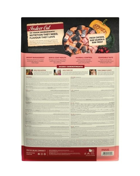 ACANA Highest Protein Indoor Cat egy fejlett táplálkozási receptúra, amely a benti macskák és a ivartalanított macskák igényeire épül. Az összetevők 75%-a magas minőségű állati eredetű összetevőkből áll, beleértve a csirkét, lazacot és pisztrángot, amelyek intenzív ízt és teljes értékű fehérjét biztosítanak az izmok támogatására és a testsúly kontrolljára.