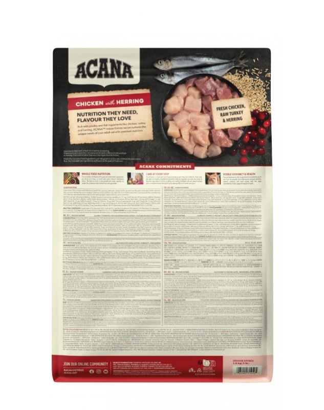 Kalóriatartalom-és megoszlás METABOLIKUS ENERGIATARTALOM (számított) = 3630 kcal/kg (250 ml pohár = 114 g = 414 kcal). Az étrendben található makrotápanyagok ideális aránya hatással van a macska egészségügyi állapotára: az energia 38 %-a fehérjékből, 40 %-a zsírokból, 22 %-a szénhidrátokból származik. Az ACANA Indoor Entrée tápanyag-összetétele megfelel a FEDIAF által a felnőtt macska tápanyagszükségletére vonatkozó előírásoknak.