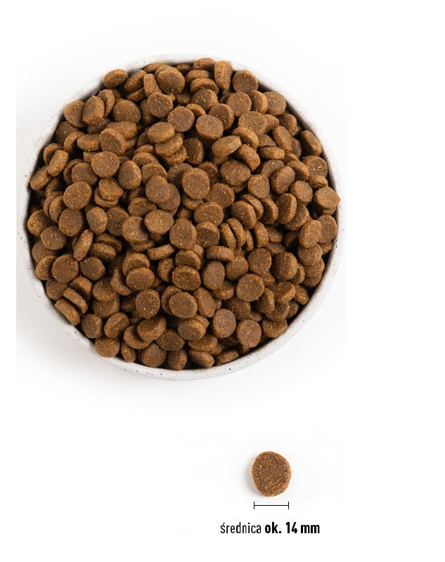 Nyersfehérje (min.): 35%, nyers olajok és zsírok (min.): 11%, nyers hamu (max.): 7%, nyersrost (max.): 8%, nedvességtartalom (max.): 12%, kalcium (min.): 1,7%, foszfor (min.): 1,1%, Omega-6 (min.): 2,2%, Omega-3 (min.): 0,9%, DHA (min.): 0,3%, EPA (min.): 0,3%