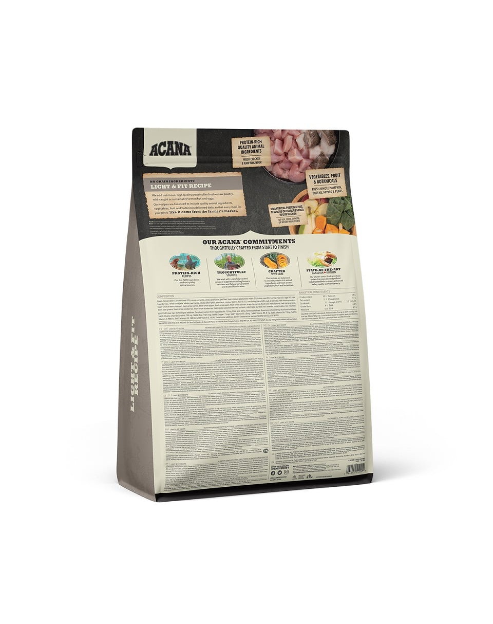 Az ideális vércukorszint miatt, az ACANA mentes magas glikémiás szénhidrátoktól, mint például rizs, kukorica vagy burgonya, helyettük lassú szénhidrátokat tartalmazó gyümölcsökből és zöldségekből készül.
