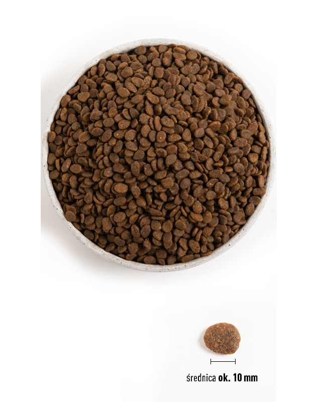 A tápszemcséket fagyasztva szárított májjal vontuk be, intenzívebbé téve az ízeket, illatokat