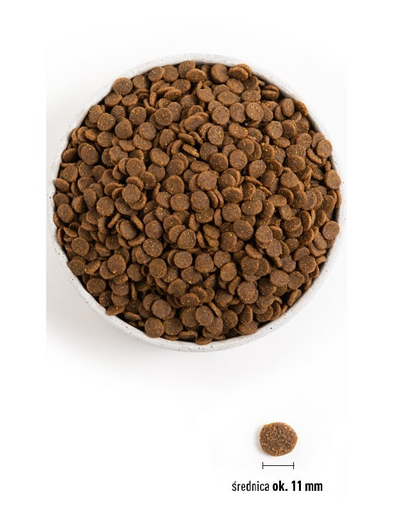 Nyersfehérje (min.) 33 % Nyerszsír (min.) 20 % Szénhidrát (NFE.) 23 % Nyersrost (max.) 5 % Nedvesség (max.) 12 % Nyershamu (max.) 7 % Kalcium (min.) 1,5 % Foszfor (min.) 1,1 % Omega 6 (min.) 2,7 % Linolsav (min.) 2,5 % Omega 3 (min.) 1,0 % DHS (min.) 0,3 % EPS (min.) 0,3 % Glükózamin (min.) 1 400 mg/kg Kondroitin-szulfát (min.) 900 mg/kg