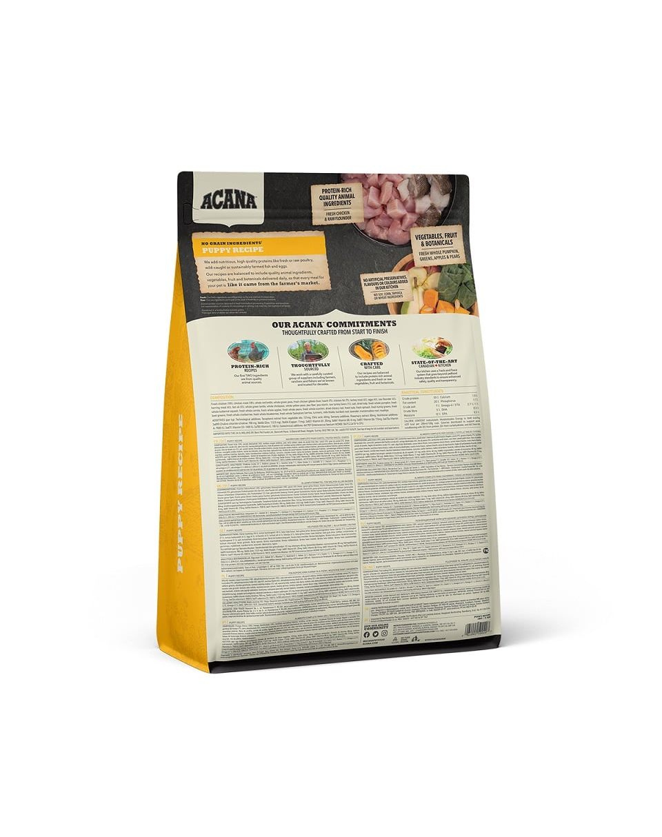 Az ACANA nem tartalmaz gabonákat és gyorsan felszívódó szénhidrátokat, mint például rizst tápiókát vagy burgonyát, ellenben tele van húsokkal, amelyek nélkülözhetetlenek a növekedés fokozottabb iramához és a tökéletes erőnléthez.