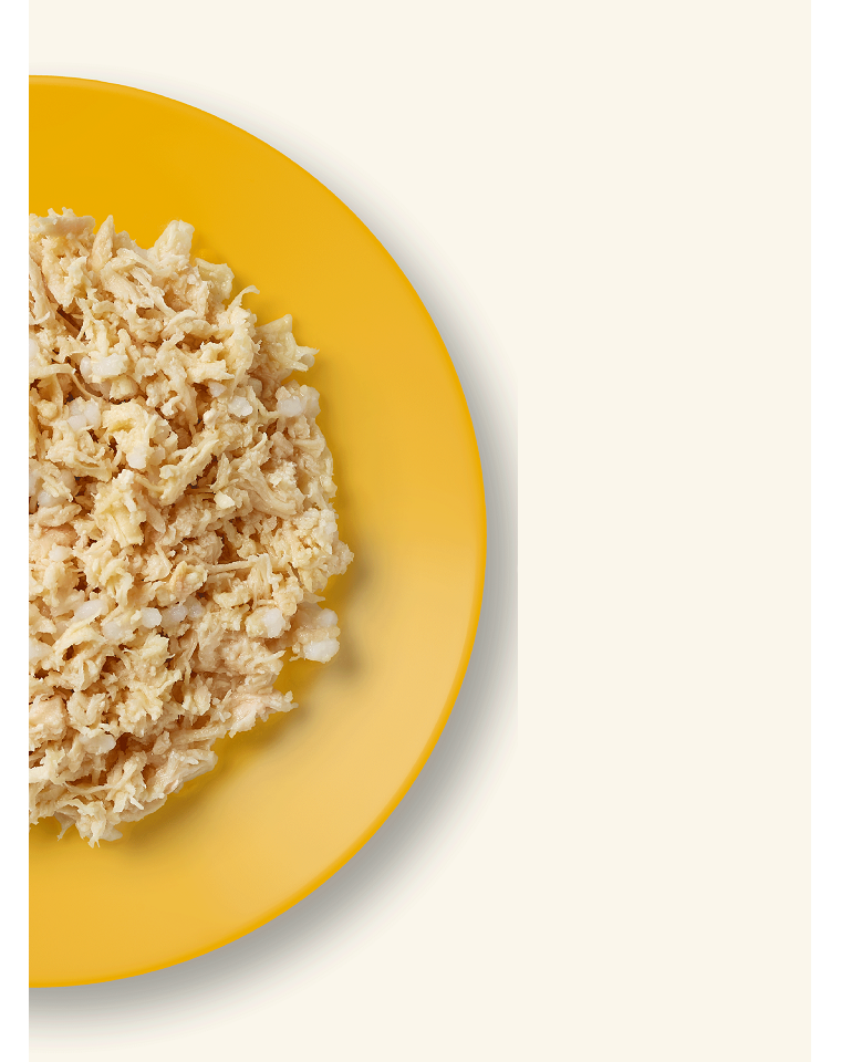 Csirkemell 70%, csirkehúsleves, sajt 5%, rizs.