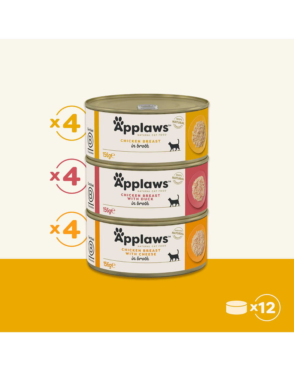 Csirkemell 70%, csirkehúsleves, kacsa 5%, rizs.