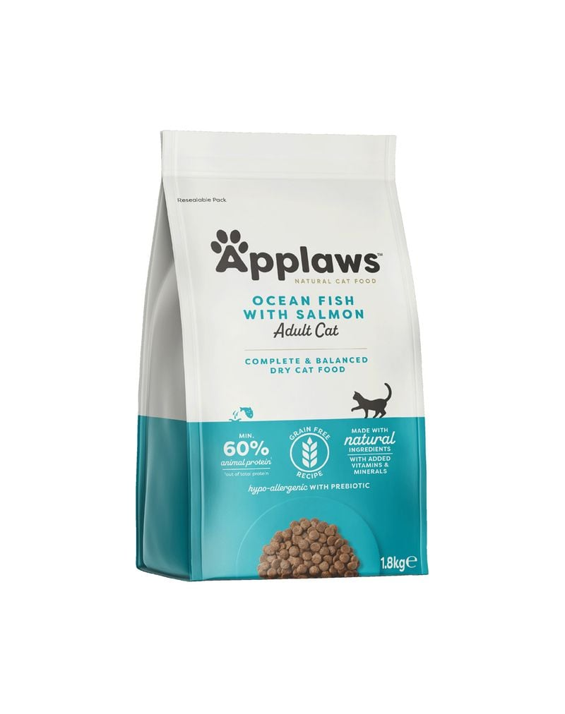 A gabonamentes receptúra tápláló halakon, főként cifra halakon és lazacon alapul. Az egész az eledel összetételének körülbelül 50%-át teszi ki. Ez lehetővé teszi a macskák táplálkozási igényeinek kielégítését, és jól felszívódó telítetlen zsírsavakkal látja el őket, amelyek javítják a macska bőrének és szőrzetének állapotát.