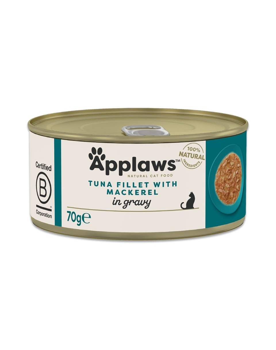 Applaws Cat Adult Tuna with Mackerel in Gravy egy természetes, gabonamentes kiegészítő táplálék felnőtt macskák számára.
