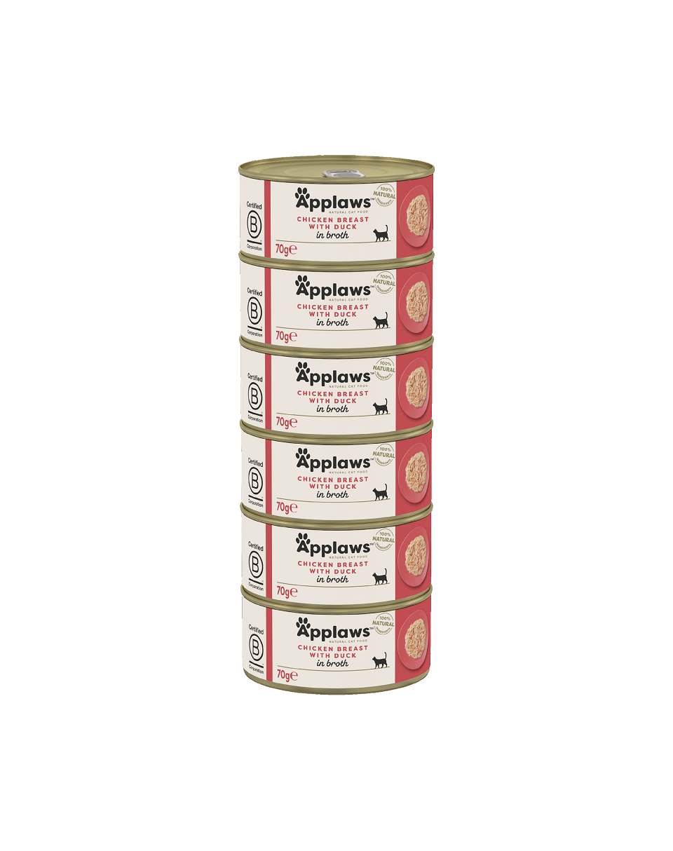 Az eledel kizárólag természetes összetevőkből áll, a receptúrában felsoroltak szerint. Nem tartalmaz egyéb felesleges összetevőket. Az eledelben található csirke és kacsa a macskák számára a legjobb és legkedvezőbb aminosavprofillal rendelkező állati fehérjét biztosítja.