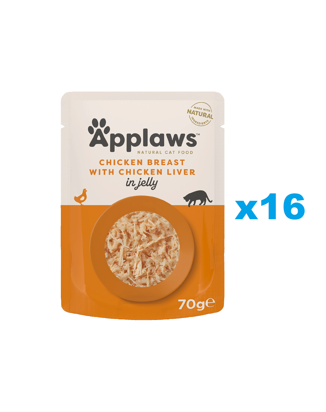 Csirkemell 55%, csirkemáj 7%, rizsliszt, növényi zselésítőanyag.