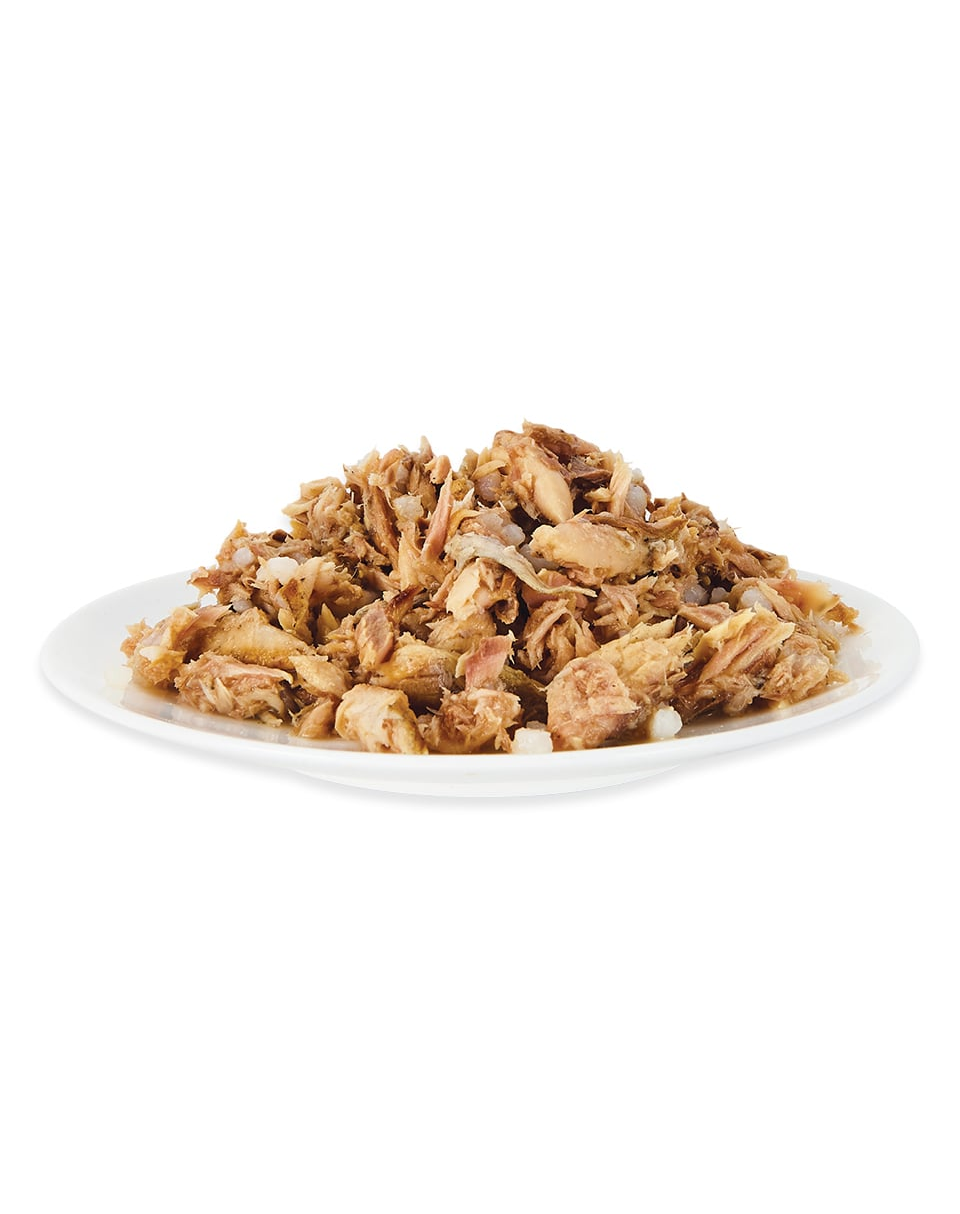 Makrélapehely 45%, tonhalfilé 30%, rizs 1%, halászlé 24%.