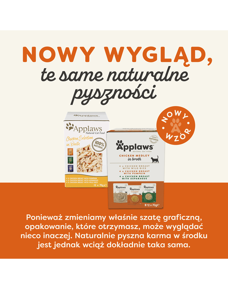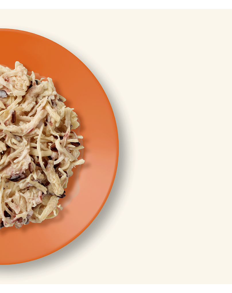 Csirke 50%, csirkehúsleves 23%, sütőtök 25%, rizs 2%.