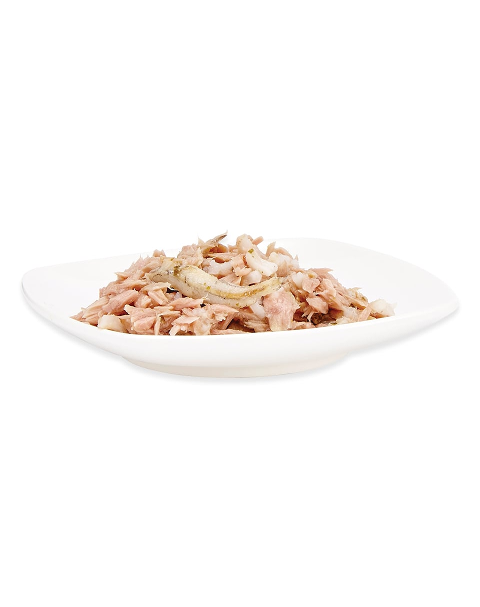 Tonhalfilé: 60%, halászlé: 24%, szardella: 5%, tengeri moszat: 5%, rizs: 2%.