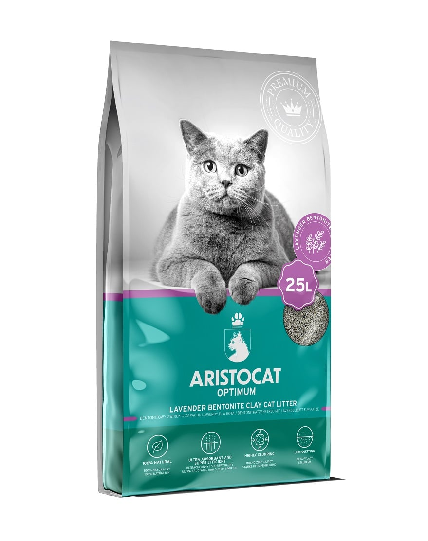 Az alkalmazott Aristocat Optimum alom illatosított összetétele kellemes és friss levendula illatot hagy az alomtálca környezetében. A bentonit agyag kíméletes a cicák mancsaihoz, az illat még azokat a macskákat is az alomtálca használatára ösztönzi, akiket korábban nem tanítottak tisztaságra.