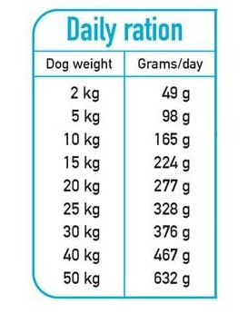HASZNÁLATI UTASÍTÁS: Félnedves táp kutyák számára, minden kutyafajta számára alkalmas. A javasolt napi adagok táblázata (a megadott mennyiségek tájékoztató jellegűek) a csomag hátoldalán található. A táp mennyisége változhat a kutya aktivitásától, fajtájától és a környezeti feltételektől függően. A kutyáknak mindig legyen tiszta és friss vízük. A tartályt szorosan zárva, hűvös, száraz és szellős helyen, fénytől és napfénytől távol kell tárolni.