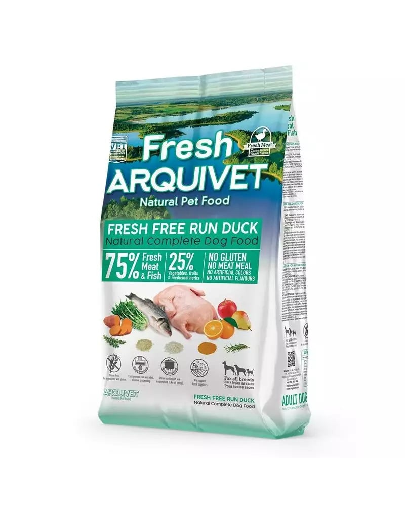 Az Arquivet táp, amely félig édes, nem tartalmaz glutént, húslisztet, mesterséges színezékeket vagy aromákat. Ezen kívül az Arquivet Fresh kacsával különleges kulináris élményeket nyújt kutyájának a friss hal és friss kacsa ízével. Minden falat egy igazi, természetes aromák robbanását biztosít kedvencének. Ez a táp tápanyagokban gazdag és ízletes, kielégíti a kutya minden szükségletét.