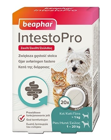 A Beaphar IntestoPro egy praktikus, tabletta formájú takarmány-kiegészítő 8 hetesnél idősebb macskák és 20 kg alatti kutyák számára, amely segít helyreállítani a bélrendszer egyensúlyát, enyhíti a hasmenést és támogatja az emésztőrendszer egészségét.