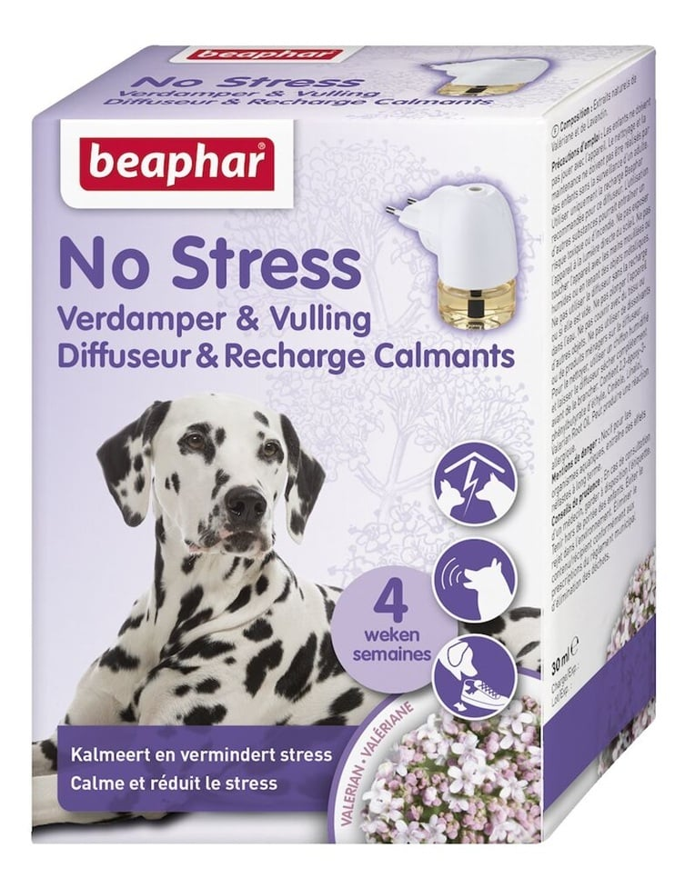 A No Stress Calming Diffuser Dog egy viselkedésjavító aroma, amely természetes valeriana és levendula kivonatok alapján készült. Segít csökkenteni a stresszt és javítani a kutya közérzetét a mindennapi helyzetekben.
