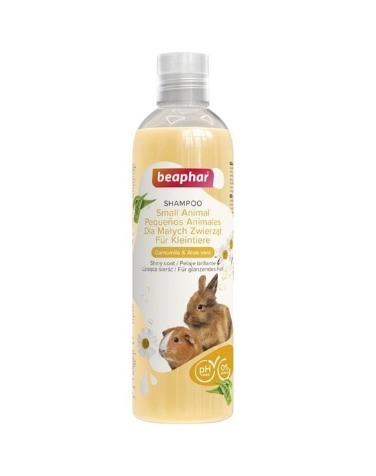 Beaphar Sampon Kisebb Állatoknak egy kíméletes, lágy ápolószer, amelyet kifejezetten nyulak, tengeri malacok és más kis háziállatok érzékeny bőrére fejlesztettek ki. Semleges pH-értéke és természetes összetevői – kamilla és aloe vera – segítenek megőrizni a bőr egészségét, miközben puhává, tisztává és fényessé teszik a szőrzetet.