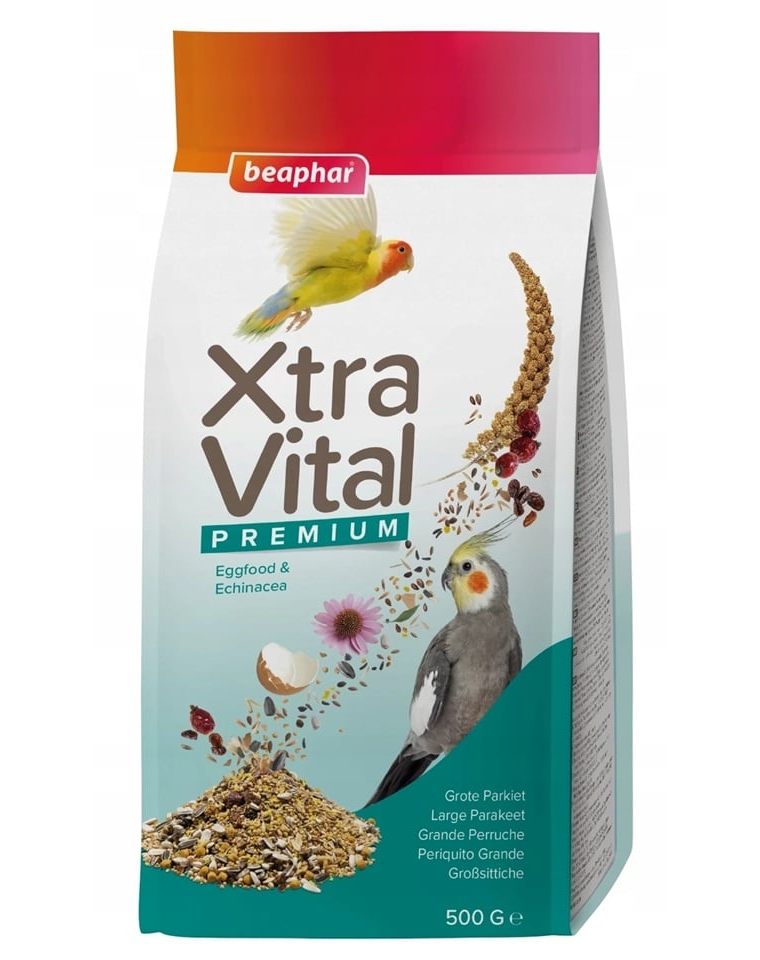 Beaphar XtraVital Large Parakeet egy különleges, ízletes és teljes értékű, kiegyensúlyozott táplálék, amelyet kifejezetten nagy papagájok és közepes papagájfajok számára fejlesztettek ki. A válogatott magvak, tojásos táplálék és gyümölcsök – köztük mazsola és csipkebogyó – optimális kombinációját táplálkozási szakemberek, állatorvosok és madárszakértők együttműködésével alkották meg, hogy maradéktalanul megfeleljen e madarak speciális táplálkozási igényeinek.