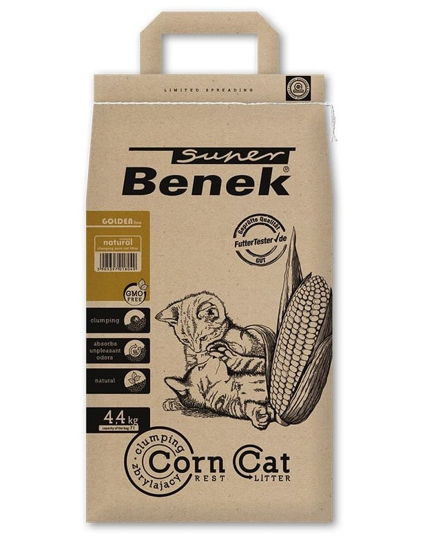 Ez a Super Benek Corn alom termékcsalád csomósodó kukorica alma. Jellegzetes görgős kialakítása jellemzi, amelynek szabályos alakja és sima felülete hatékonyan csökkenti az alomtálcán kívülre kerülő almot. A granulátum megőrzi a kukorica alom termékcsalád tulajdonságait, mivel nagy nedvszívó képességű, hatékony és hatásos a szagok felszívásában. A 100%-ban természetes, megújuló nyersanyagból készült, biológiailag lebomló szemcse. A csomós alomdarabok szilárdan össze vannak kötve, és nem peregnek ki, amikor lapáttal kihúzzuk őket az alomtálcából. A kellemetlen szagokat a csomóba záró innovatív technológia biztosítja a frissességet, és hatékonyan eloszlatja a macskavizelet jellegzetes szagát. A Benek Corn alom barátságos Önhöz, kedvenceihez, de a környezethez is!