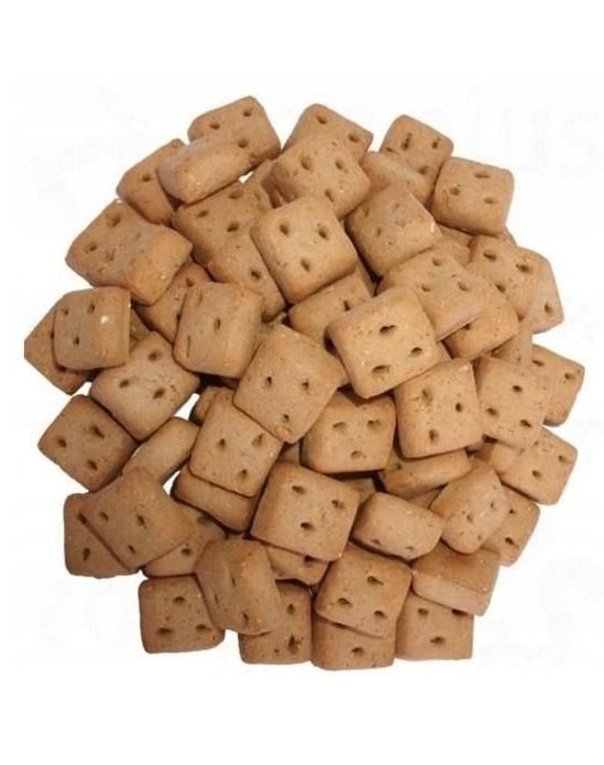 Természetes, ropogós kekszek kutyák számára, amelyeket öt gondosan kiválasztott gabona keverékéből készítettek, amelyek támogatják az egészséges emésztést és értékes mikroelemeket biztosítanak.