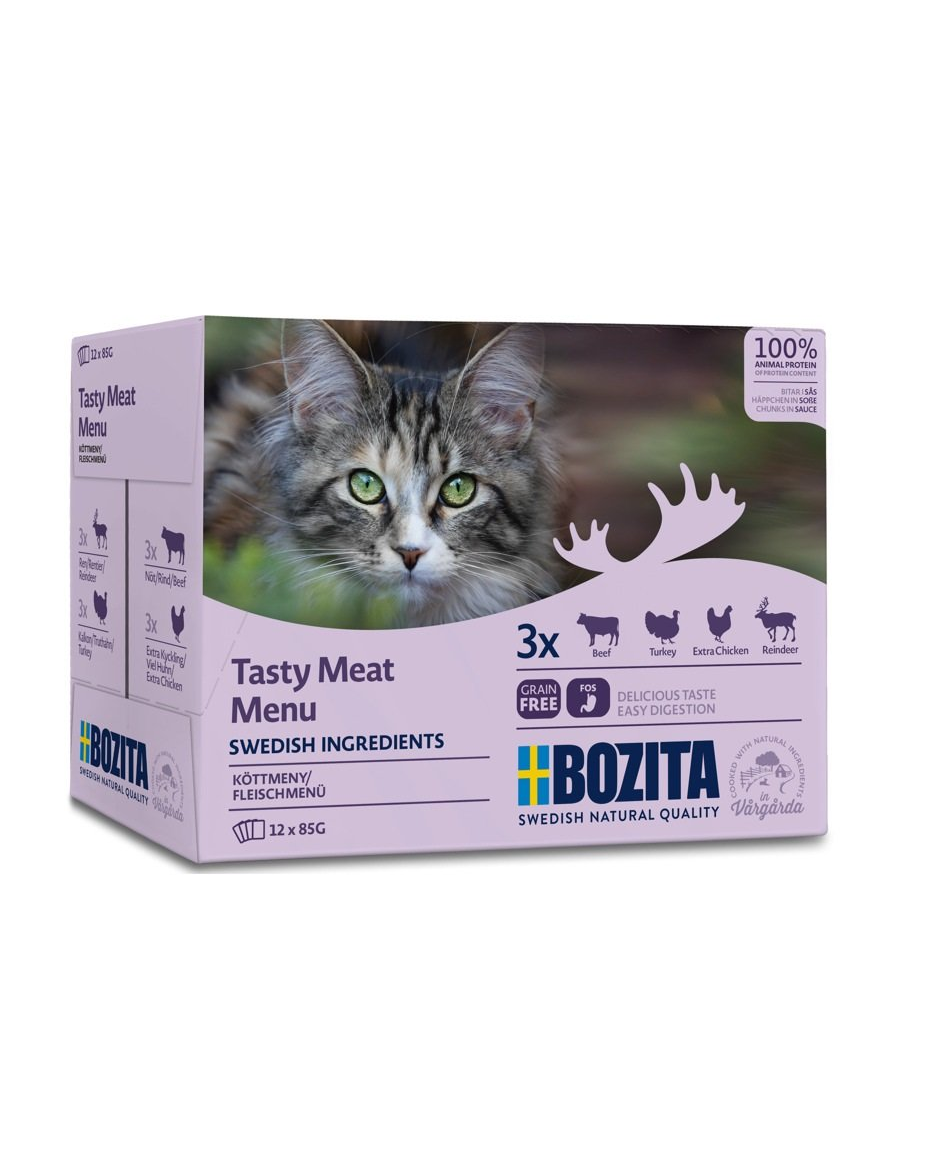 A Bozita egy összetevőből álló nedves eledel egy teljesen kiegyensúlyozott macskaeledel, amely minden alapvető vitamint és ásványi sót tartalmaz. Minden elem Svédországból származik, az összes hozzávalót a svéd vidékről és vadon élő állatokból szerezték be. Svéd gazdaságokkal dolgozunk együtt, és a legjobb minőségű nyersanyagokat választjuk.
