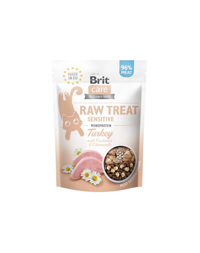 ABRIT Care Raw Treat Freeze Dried Sensitive egy kifejezetten felnőtt, ivartalanított macskák számára kifejlesztett fagyasztva szárított eledel.