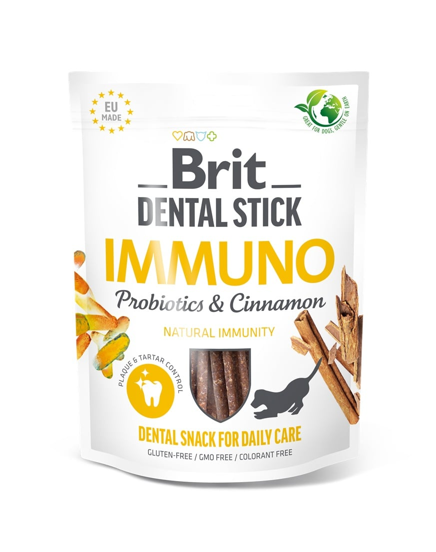 Brit Dental Stick Immuno egy funkcionális, vegetáriánus fogászati snack, amely támogatja a felnőtt kutyák szájhigiéniáját és természetes immunitását. A speciális szerkezetének és a SHMP hozzáadásának köszönhetően a rudak segítenek eltávolítani a lepedéket a fogakról, és csökkentik a fogkő kialakulásának kockázatát.