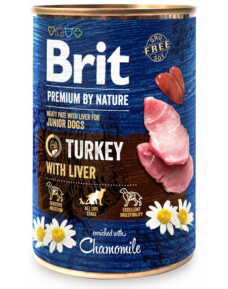 Összetétel: pulyka 36%, húslé 35,5%, csirke 22%, pulykamáj 4%, kamilla 1%, ásványi anyag 1%, lazacolaj 0,5%.