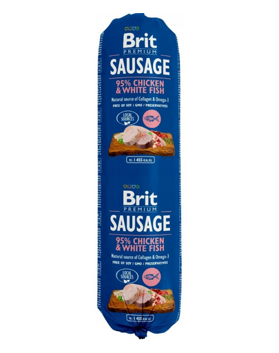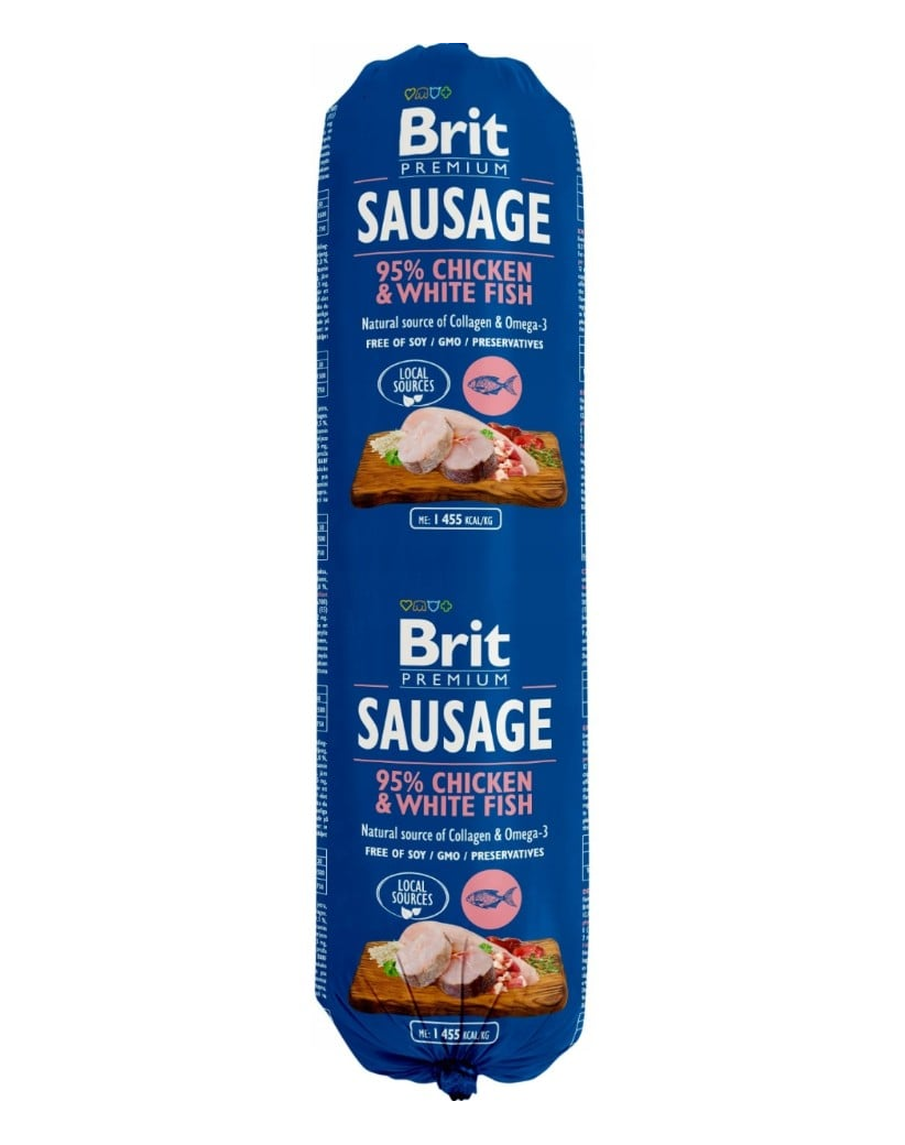 Brit Sausage ízletes forrása a teljes értékű állati fehérjének. Finom kiegészítője lehet más tápoknak, vagy a kutya étrendjének alapját képezheti.