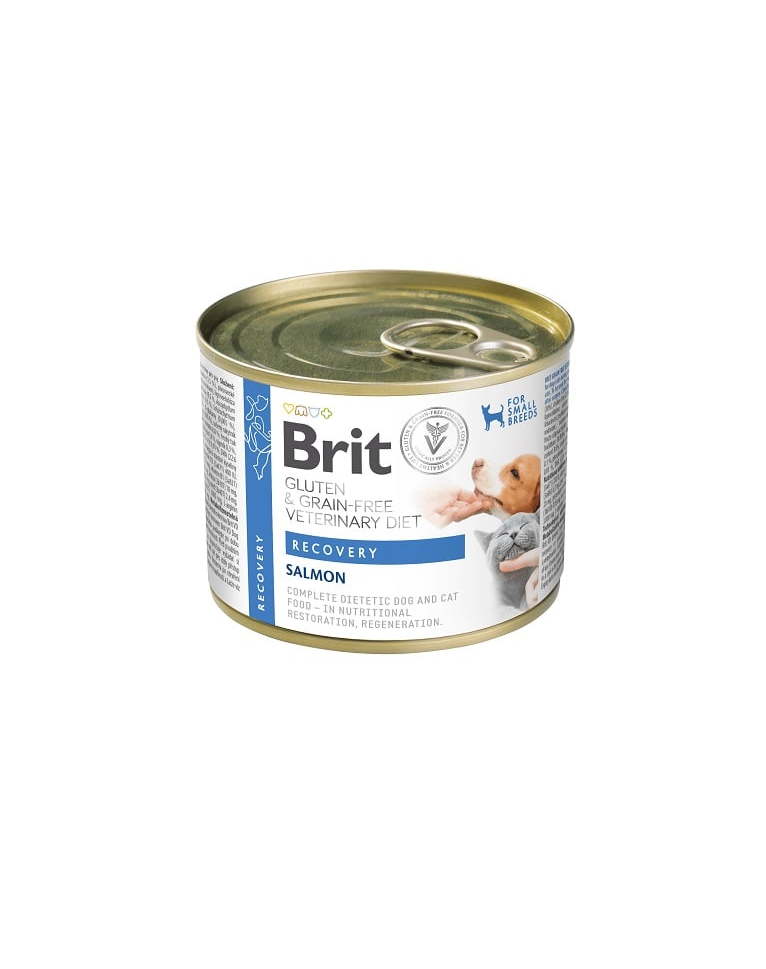 Brit Veterinary Diet Dog/Cat Recovery egy speciális diétás eledel, amelyet a lábadozó állatok számára fejlesztettek ki. Receptúrája a könnyű emészthetőséget magas tápértékkel ötvözi, ami lehetővé teszi a hatékony támogatást a betegség, műtét vagy egyéb terhelések utáni regenerációhoz. A lazac és a csirke máj könnyen felszívódó fehérje és nélkülözhetetlen tápanyagok forrásai, amelyek segítik az izomtömeg helyreállítását és visszaállítják az erőt. További támogatást nyújtanak a prebiotikumok és a béta-glükánok, amelyek segítik a bélflórát és az immunitást. Az eledel gluténmentes, így biztonságos a érzékeny emésztőrendszerű állatok számára is.