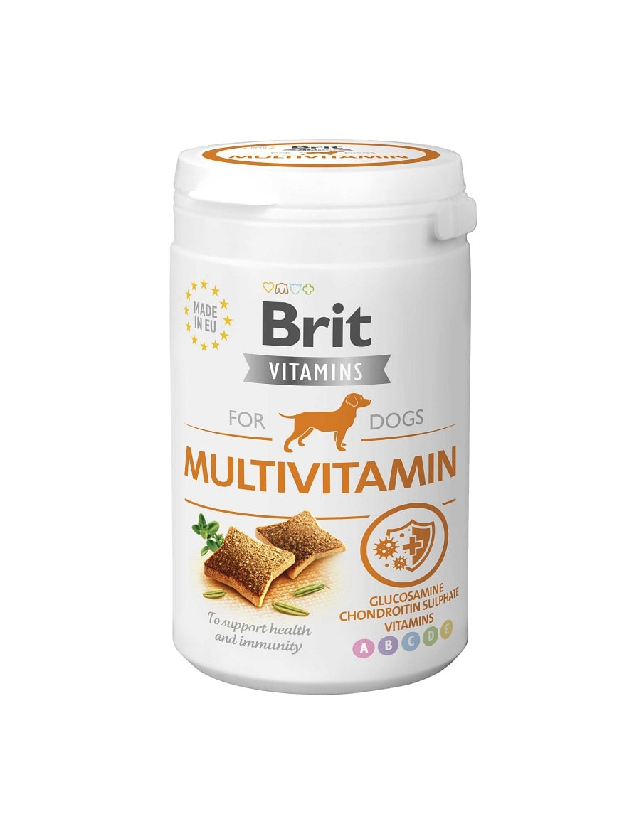 Brit Vitamins Dog Multivitamin egy funkcionális kiegészítő táplálék felnőtt kutyák számára, amelyet az immunrendszer, az ízületek és az emésztőrendszer napi támogatására terveztek. A finom csirkehús (26%) alapú félig puha falatok gazdag vitamin komplexumban (A, C, D, E és B), valamint aktív összetevőkben, mint például glükózamin, kondroitin és gyógynövény kivonatok. Ez az ideális megoldás a gyengülés, a lábadozás vagy az időszakos időjárásváltozás idején.