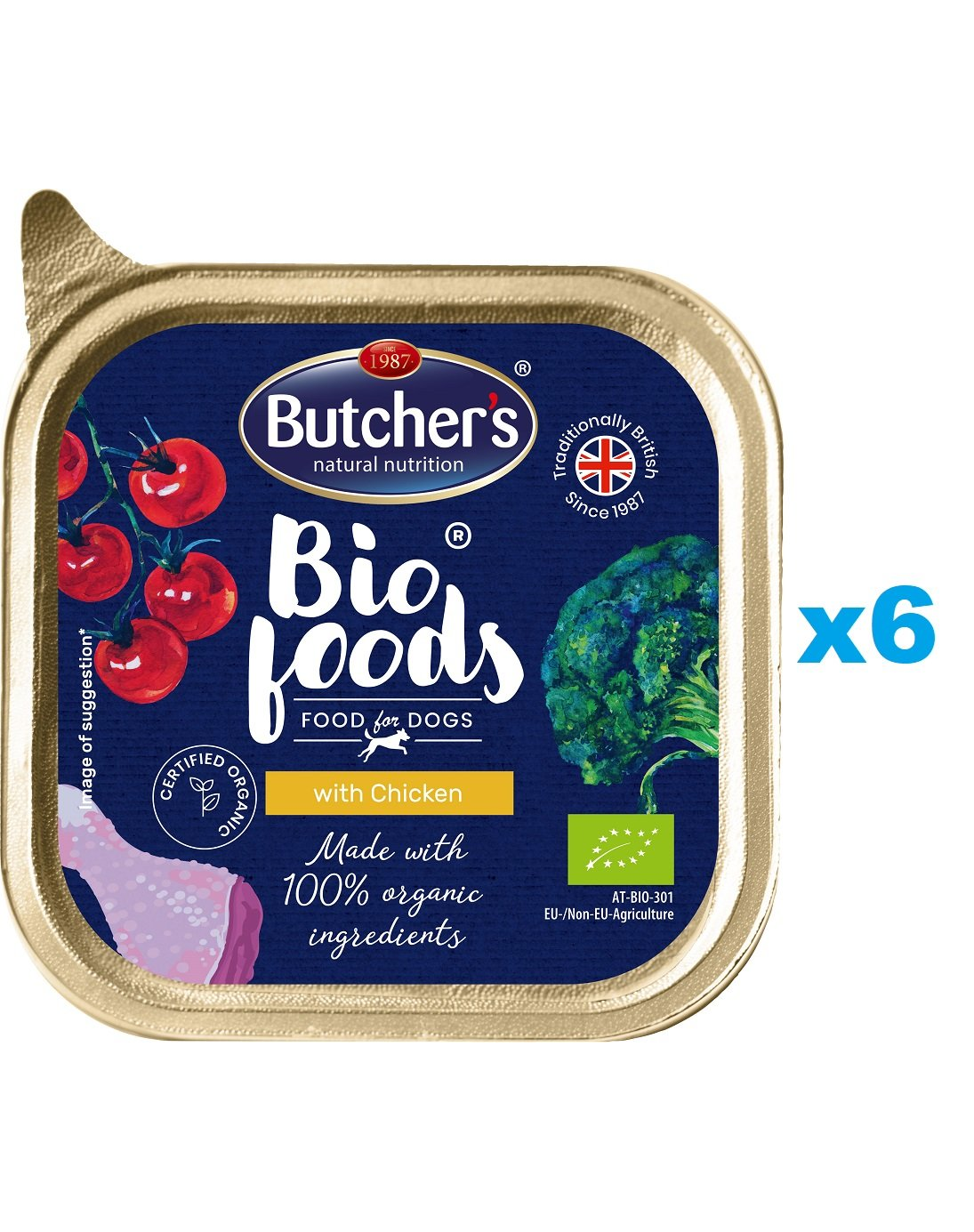 63% Hús és állati termékek 100% ellenőrzött ökológiai gazdálkodásból (bio csirke 19%), ásványi anyagok.
