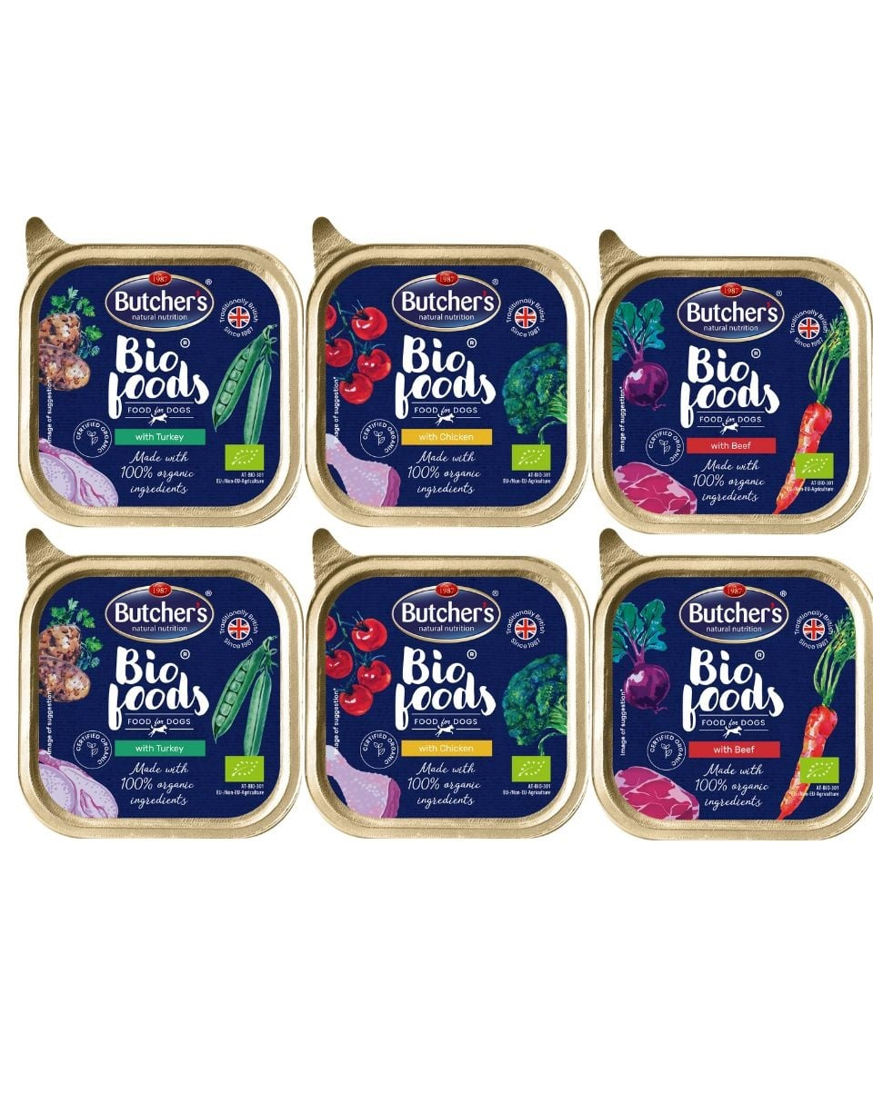 BUTCHER'S BIO foods Mix ízek pulyka, marha, csirke 6x150 g kutyapástétom készlet tartalmaz: