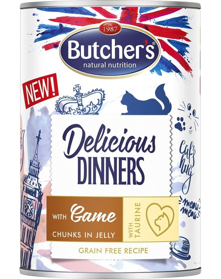 A Delicious Dinners eledelek ízletes, eredeti ételek, tele a legjobb minőségű összetevőkkel, hogy a legigényesebb macska ínyencek is elégedettek legyenek.