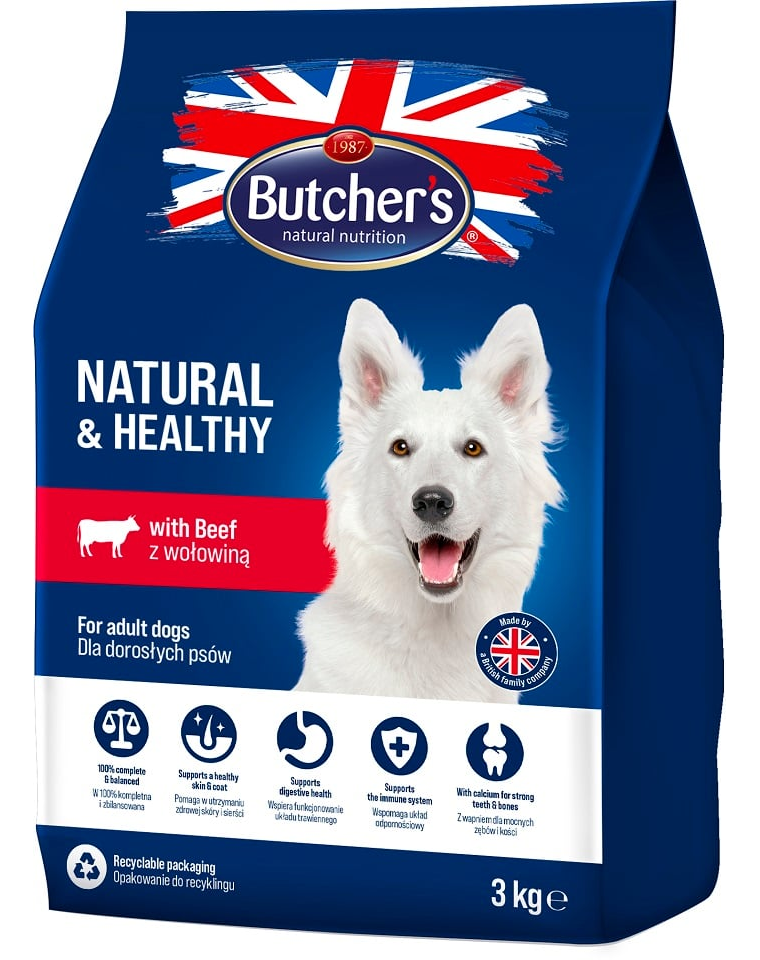 Ízletes, teljes értékű száraz kutyatáp kiváló minőségű marhahússal. A táplálkozási szakemberek és állatorvosok irányításával kifejlesztett, természetes eredetű összetevőkön alapuló kiegyensúlyozott receptúra biztos, hogy kutyája kedvében jár, és biztosítja az egészséges és hosszú életet.