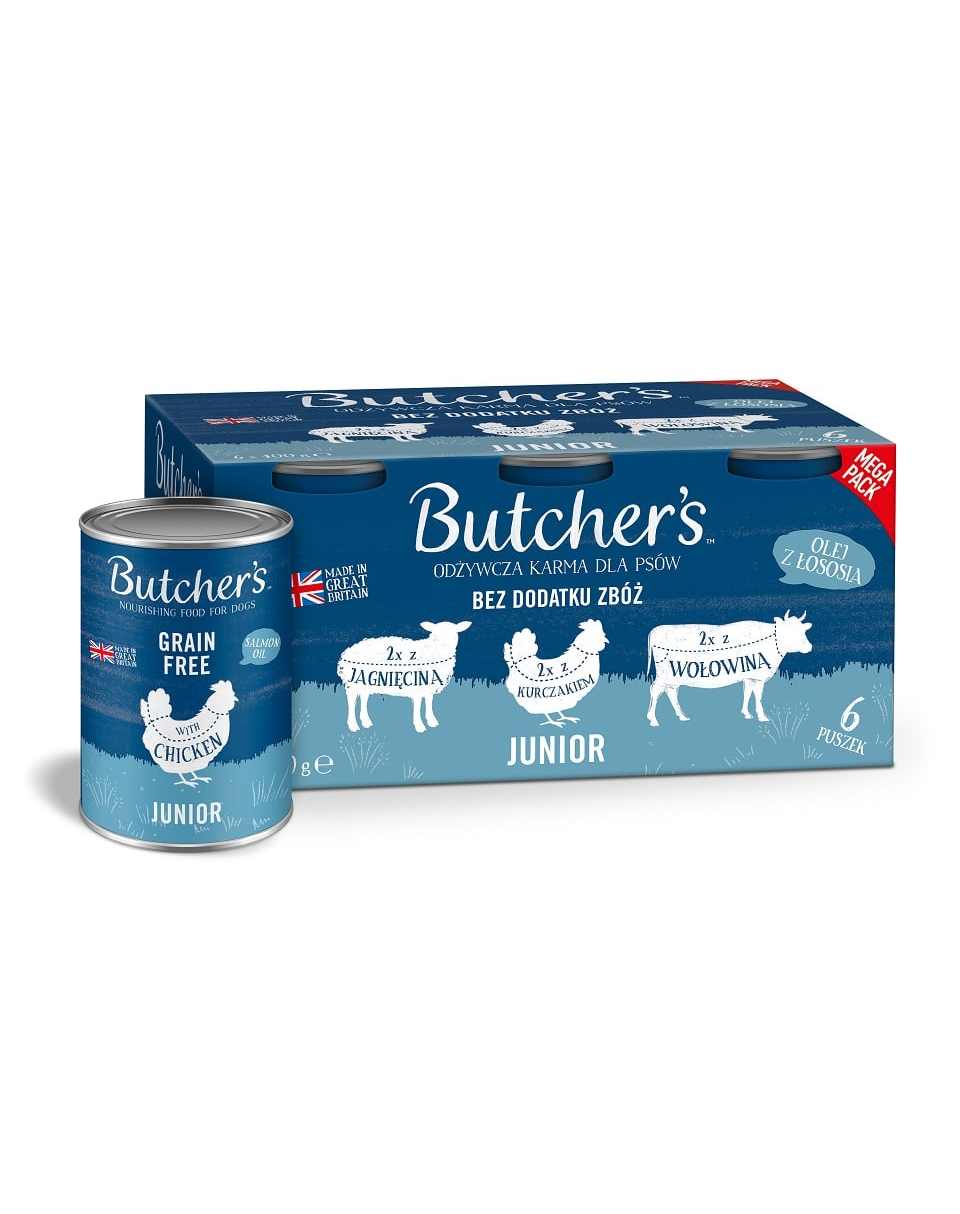 A Butcher's Original Junior gabonamentes eledelek, amelyeket a kölyökkutyák táplálkozási igényeinek figyelembevételével fejlesztettek ki. A termékcsalád termékeit úgy tervezték, hogy a kölyökkutyáknak a legjobb kezdést biztosítsák felnőtt életükhöz. Minden termék természetes összetevőkön alapul, és környezetbarát csomagolásban kerül forgalomba.