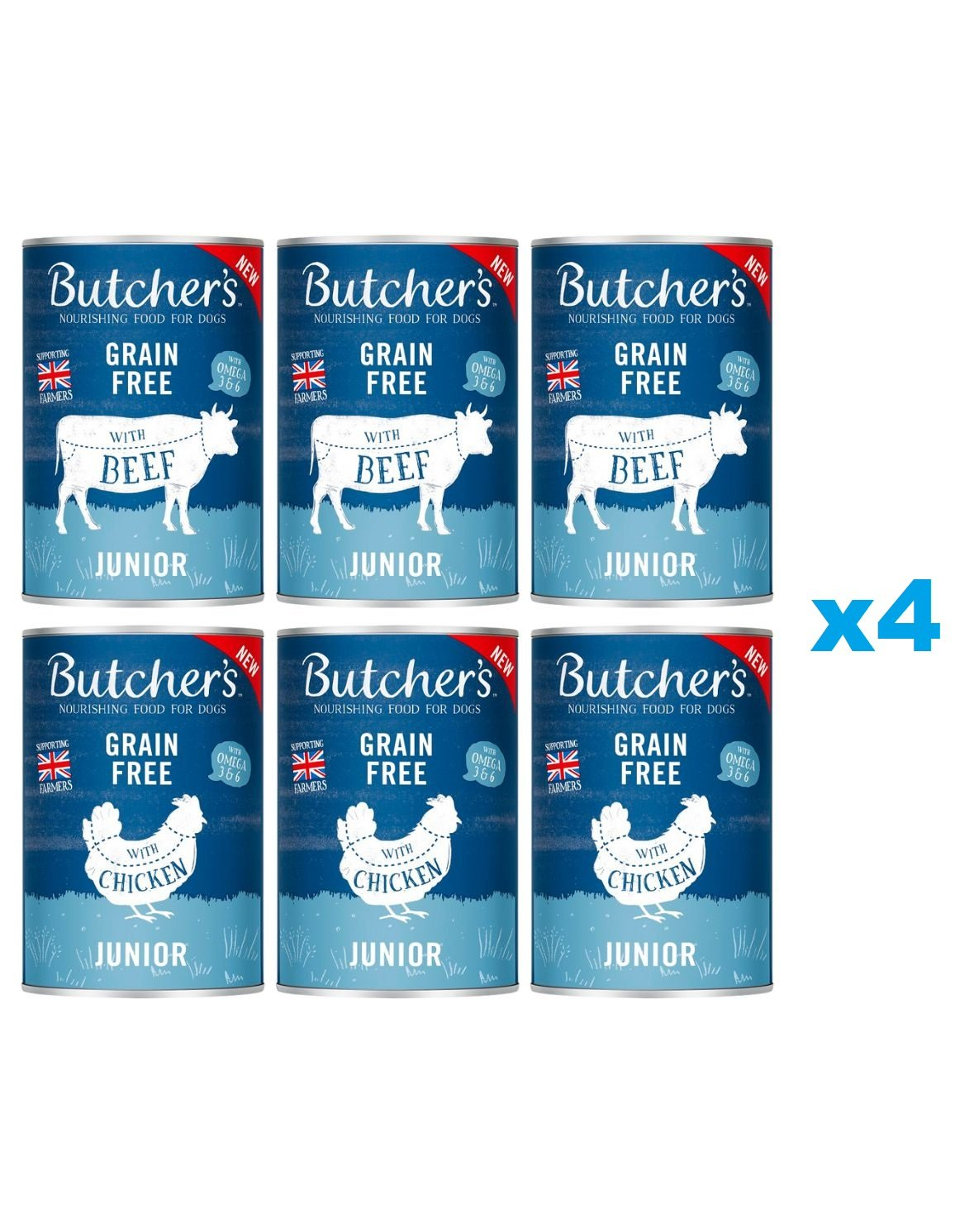 BUTCHER'S Original Junior Vegyes ízek 24x400g marhahúsos és csirkés darabkák zselében kölyökkutyáknak készlet tartalmaz: