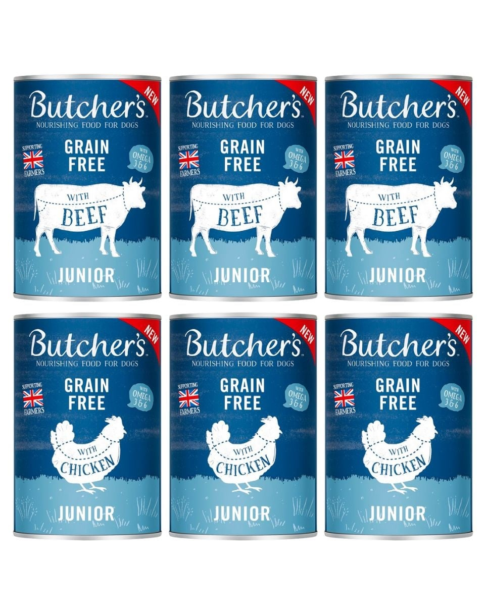 BUTCHER'S Original Junior vegyes ízesítésű 6x400g-os marhahúsos és csirkés zselés készlet kölyökkutyáknak tartalmaz: