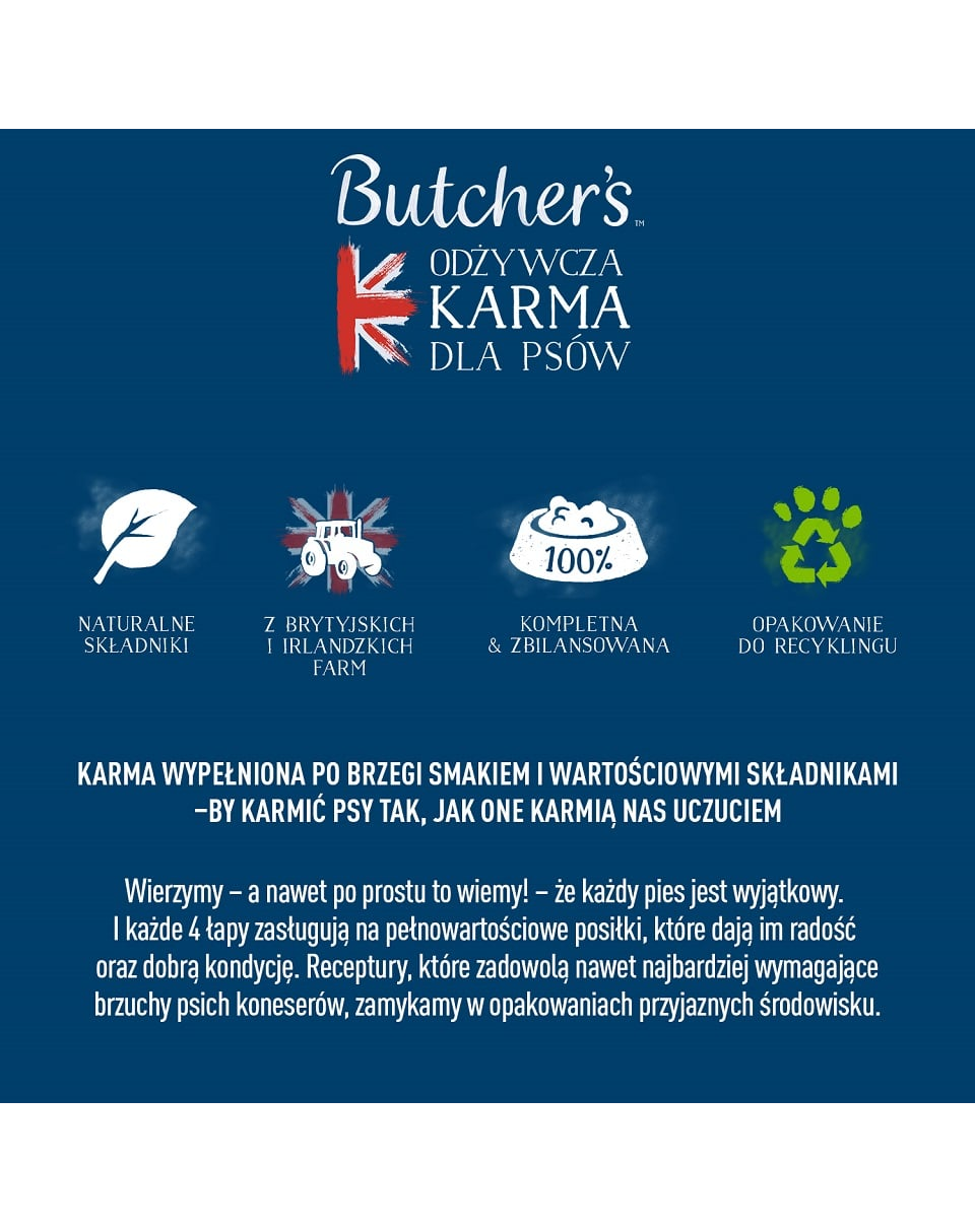 A Butcher's Original Tripe marhapörkölttel dúsított teljes értékű eledelek, amelyeket a háziállatok napi szükségleteinek kielégítésére terveztek. Minden termék természetes alapanyagokból készül, és környezetbarát csomagolásban kerül forgalomba.