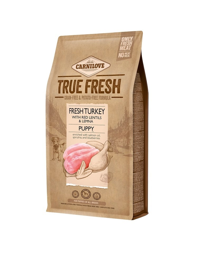 ÖSSZETÉTEL: friss pulyka (60%), borsó, csicseriborsó, szárított alma, csirkezsír (tokoferolokkal tartósítva), vörös lencse (4%), sütőtök, lazacolaj (2%), lenmag (2%), természetes