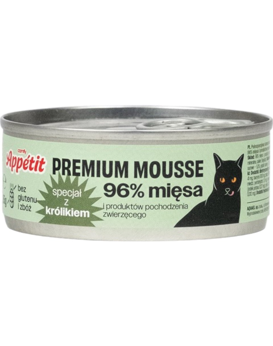 AComfy Appetit Premium Mousse természetes alapanyagokon alapulónedves eledel felnőtt macskák számára. Az eledel 96%-ban tartalmaz húst és állati eredetű termékeket.