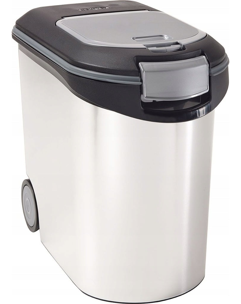 A tartály beépített kerekekkel rendelkezik, így a teljes élelmiszer-tartály szállítható. A nagy kapacitás - akár 35 liternyi élelmiszer tárolására - jelentős súlyt jelent, de a kerekek jelentősen megkönnyítik a tároló mozgatását.
