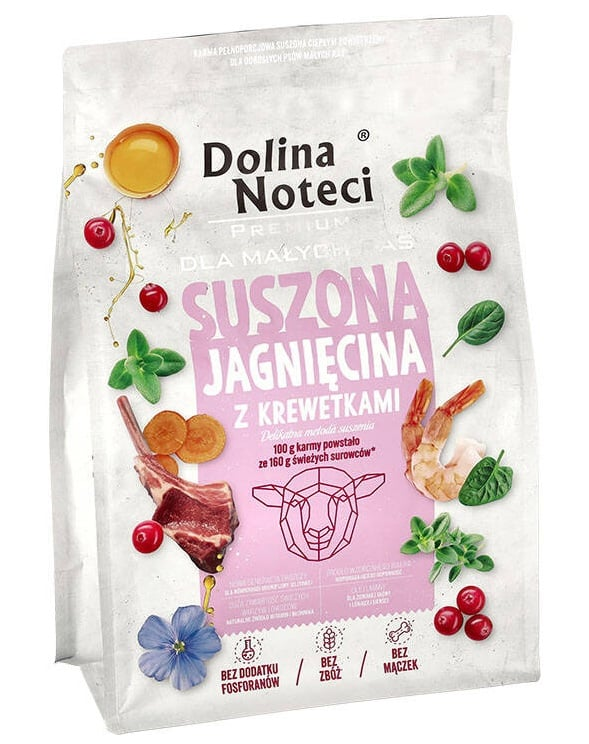Dolina Noteci Premium Bárány garnélával egy teljes értékű, szárított eledel, amelyet kisméretű felnőtt kutyák speciális táplálkozási igényeinek figyelembevételével készítettek.