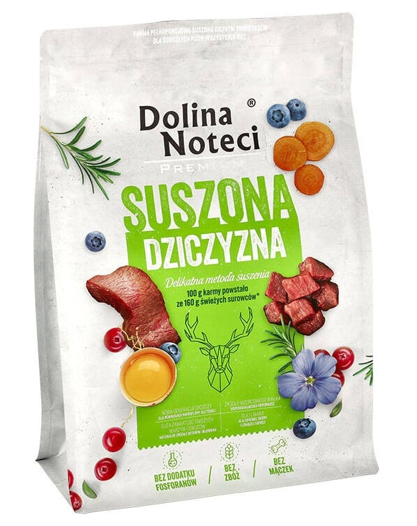 Dolina Noteci Premium Vadhús egy teljes értékű, szárított táplálék felnőtt kutyák számára, minden fajtának, amely biztosítja számukra a napi energiamennyiséget és a szükséges tápanyagokat az egészség és a kondíció fenntartásához.