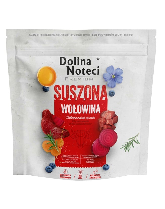 Dolina Noteci Premium Marhahús egy teljes értékű, szárított táplálék kutyák számára, amely minden felnőtt kutyafajta számára készült, biztosítva számukra a teljes és kiegyensúlyozott táplálkozást minden nap.