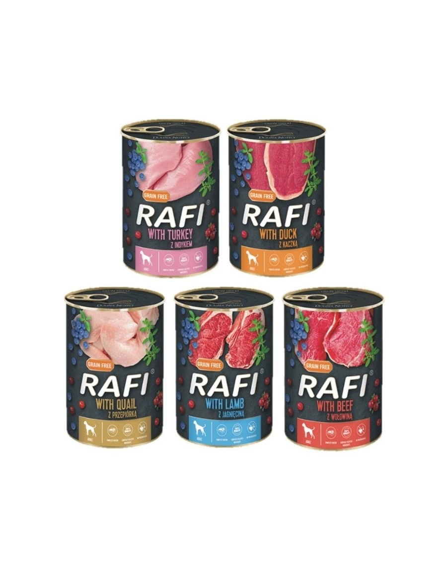 Hús és állati eredetű termékek 65% (pulykahús 4%), gyümölcsök (áfonya 2%, áfonya 2%), ásványi anyagok, olajok és zsírok (lenmagolaj 0,2%), szárított kakukkfű 0,01%.