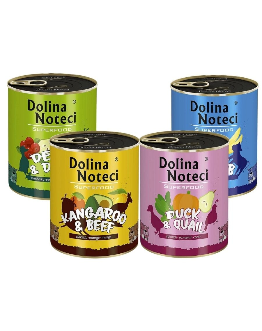 Összetétel: Szarvas 40% (hús 20%, tüdő, máj), kacsa 40% (máj, szív, bélsár, hús 5%), húsleves, áfonya 3%, ásványi anyagok, jamgyökér 1%, borsó 0,5%, körte 0,5%, szárított sörélesztő 0,3% (prebiotikumforrás: mannanooligoszacharidok és B-glükánok), lenmag 0,1%, Psyllium mag, Mojave yucca, tengeri moszat, új-zélandi zöld ajkú kagyló 0,02%, glükozamin 0,02%, kondroitin-szulfát 0,02%.