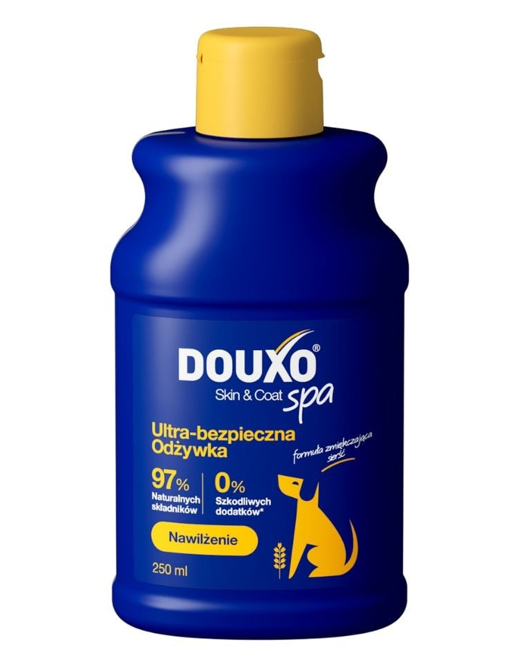 DOUXO Skin & Coat SPA Ultra-biztonságos zabpehely balzsam kutyáknak Biztonságosan kibogozza, hidratálja a bőrt és visszaadja a szőr fényét. Puha, selymes és fénylő érzetet hagy maga után. Bőrbarát formula.